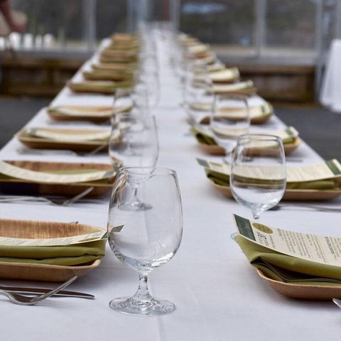 We provide all paper products, so you don't need to worry about paper plates, cups, silverware, or napkins. These paper products are either white or kraft brown. If you wish to use colored or themed paper products please feel free to bring them with you. If you wish to use our rustic farmhouse melamine plates and stainless silverware there is a $3.00/per person up-charge.